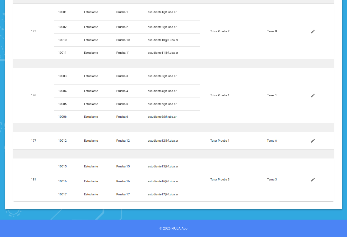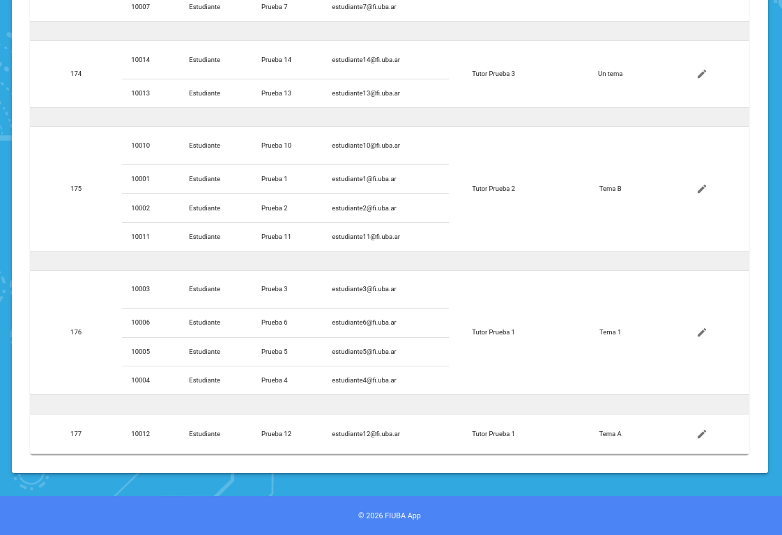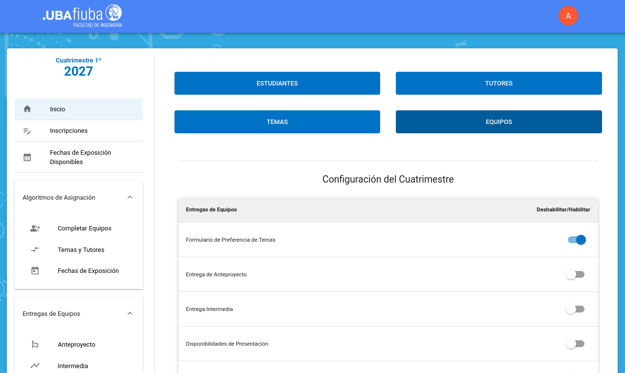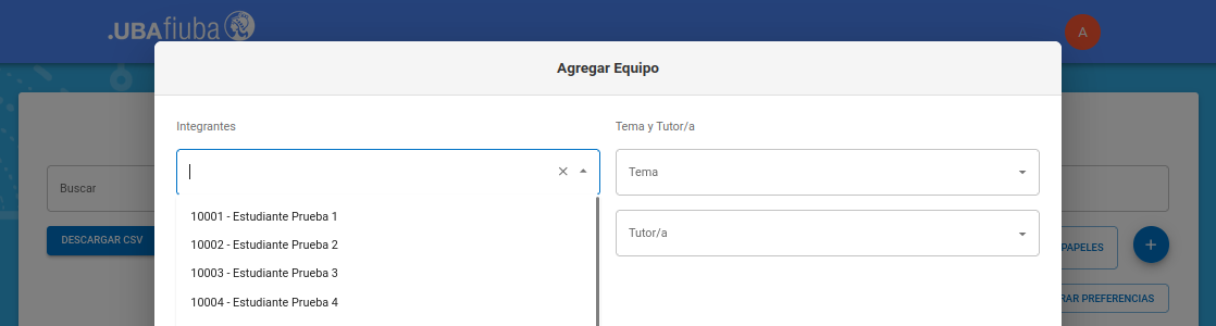 Aclaración: si no figuran temas en la lista desplegable, se trata de un error, vuelva a la pantalla principal clickeando el logo FIUBA y intente nuevamente.