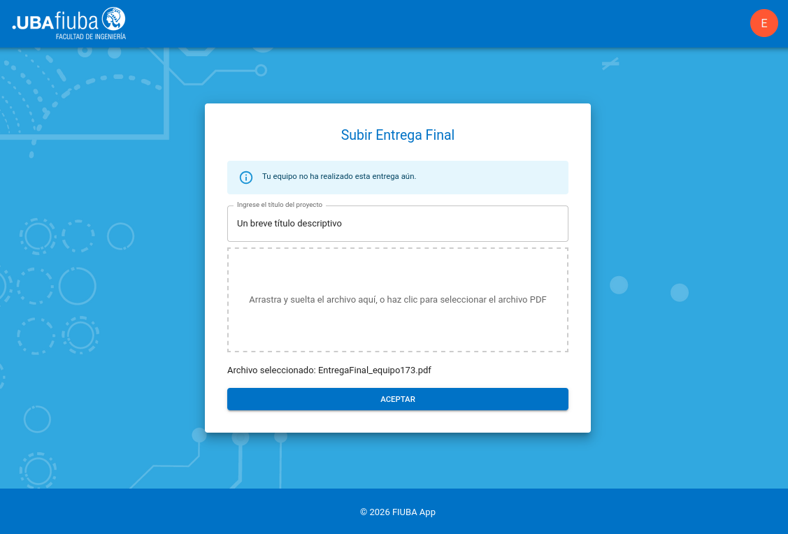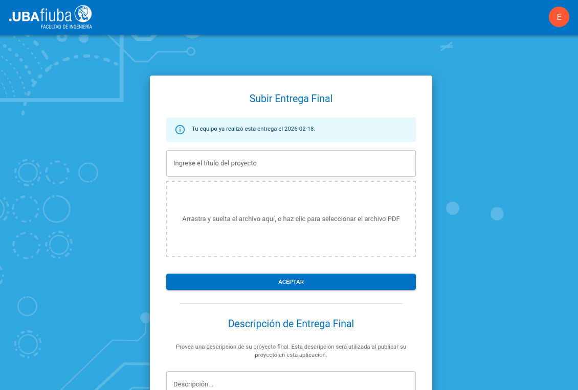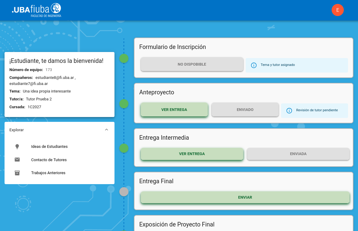 Haga click en el logo FIUBA para regresar al dashboard. Tanto usted como los demás integrantes de su equipo podrán ver que la entrega ha sido realizada.