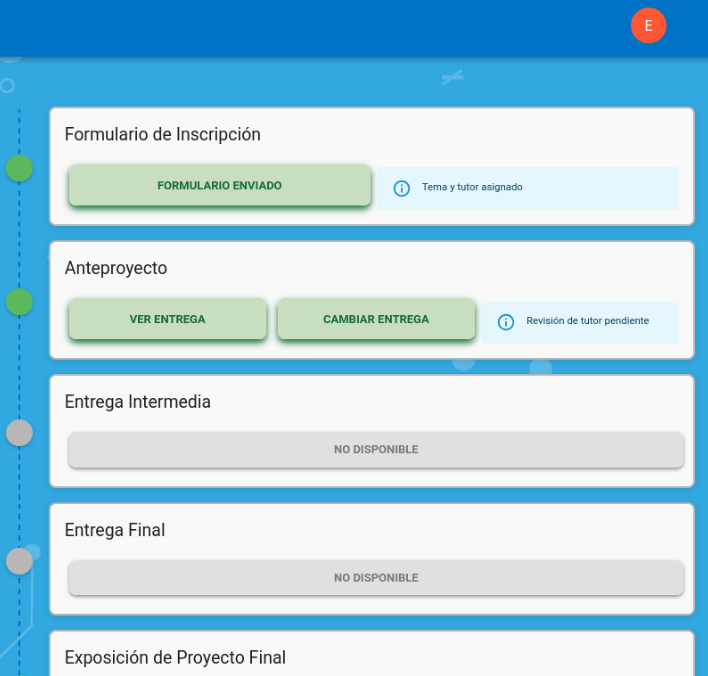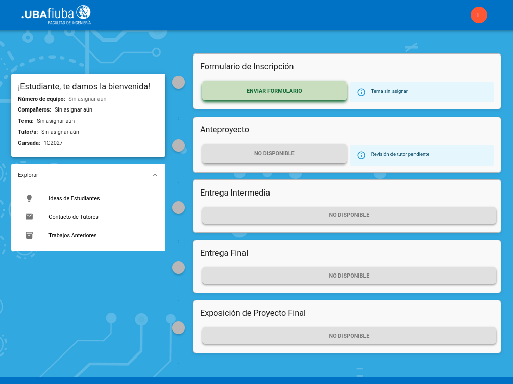 A la izquierda podrá ver información básica, como su cuatrimestre actual. Al inicio del cuatrimestre, usted no tendrá un tema asignado.