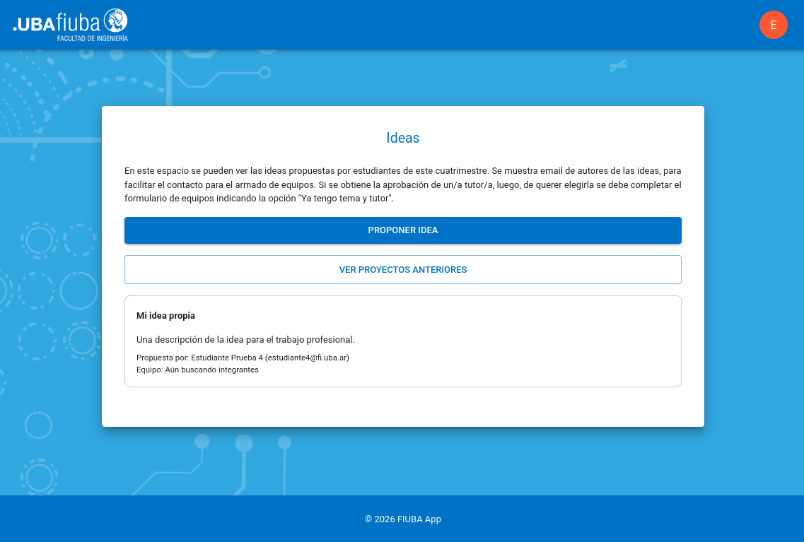 Si ya existen ideas, podrá ver un listado de todas las ideas propuestas por compañeros/as de su mismo cuatrimestre.
