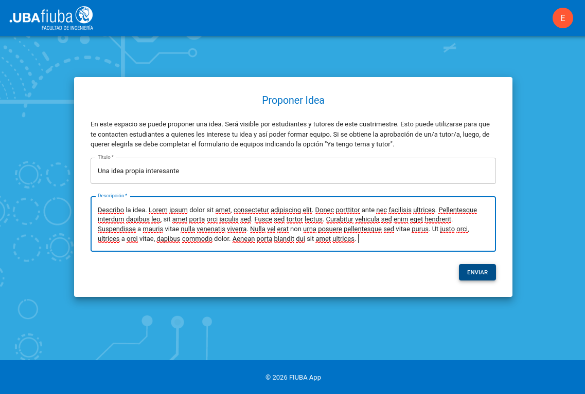 Si desea proponer su propia idea, haga click en "Proponer idea". Ingrese un título y una breve descripción de la misma y haga click en "Enviar".