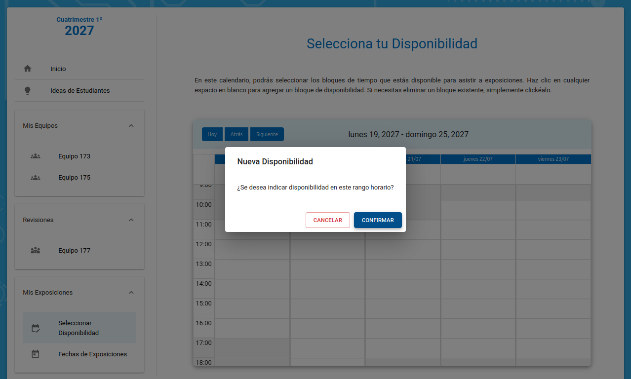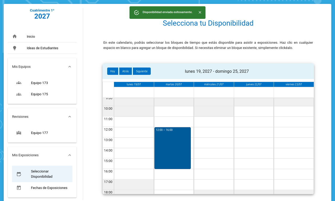 7. Una notificación le indicará que se indicó exitosamente esa disponibilidad.